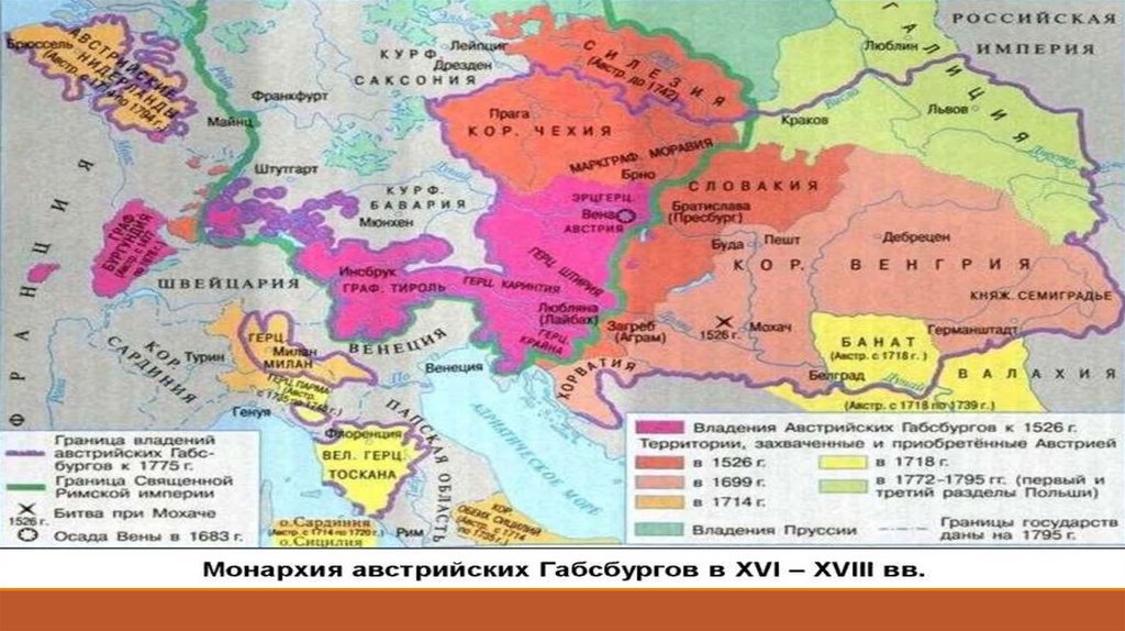 В конце XVII и в XVIII в. австрийские Габсбурги получили Восточную Венгрию и Трансильванию, а также Хорватию и часть Словении