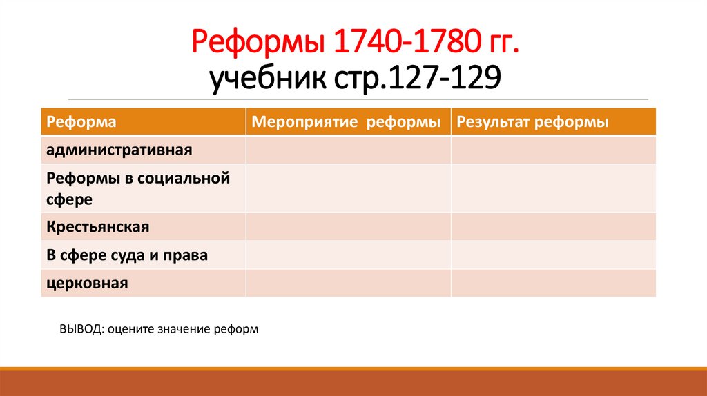 10. Реформы 1740-1780 гг. учебник стр.127-129