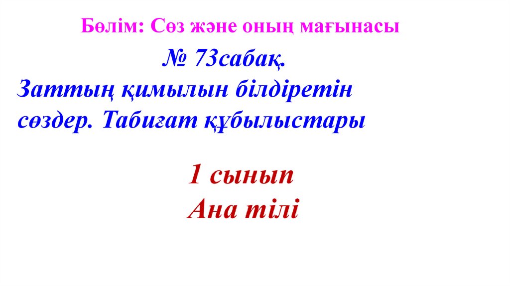 Бөлім: Сөз және оның мағынасы№ 73сабақ.