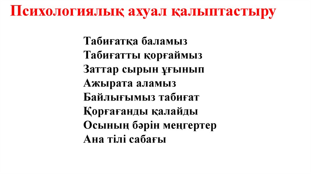 Психологиялық ахуал қалыптастыруТабиғатқа баламыз