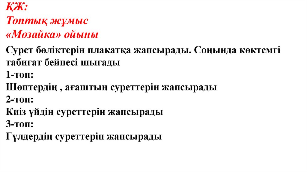 Сурет бөліктерін плакатқа жапсырады. Соңында көктемгі