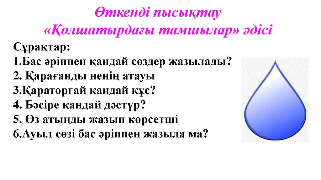 Өткенді пысықтау«Қолшатырдағы тамшылар» әдісі