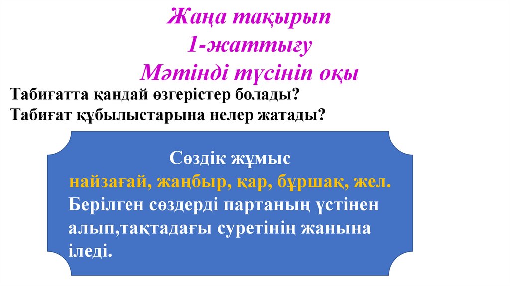 № 73сабақ. Заттың қимылын білдіретін сөздер. Табиғат құбылыстары
