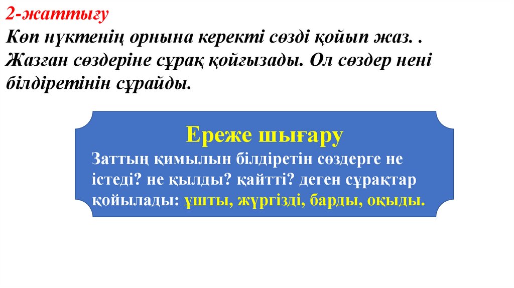 2-жаттығуКөп нүктенің орнына керекті сөзді қойып жаз. .