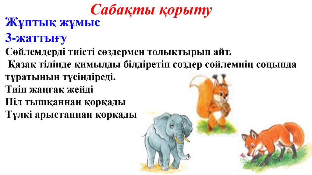 Сөйлемдерді тиісті сөздермен толықтырып айт.