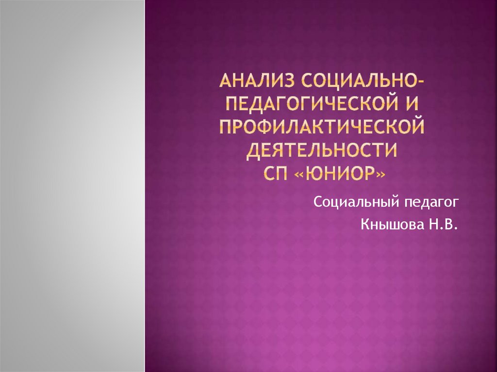 Анализ социально-педагогической и профилактической деятельности СП «Юниор»