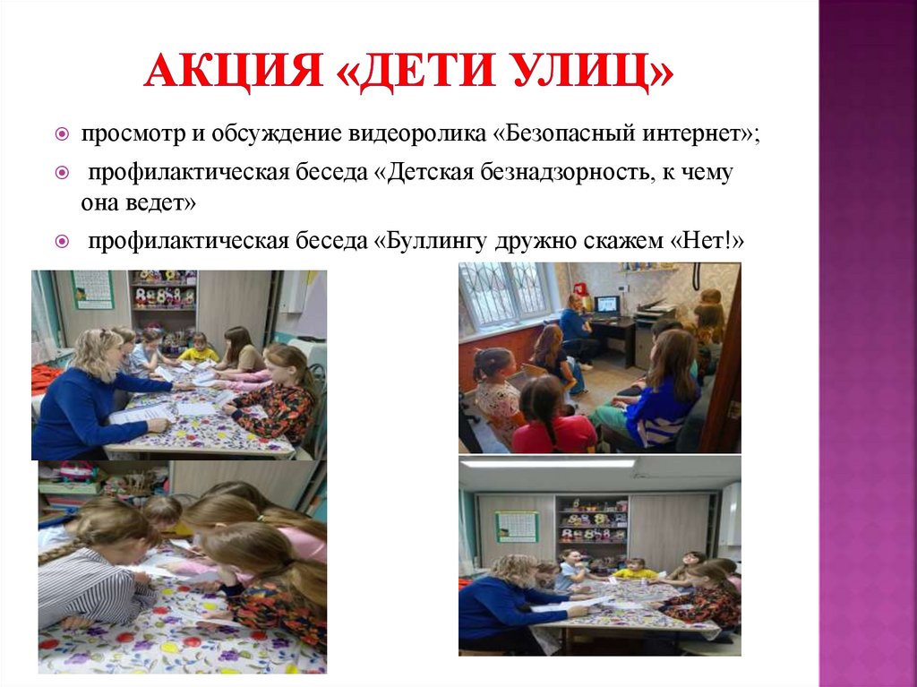 детям», «Внимание дети!», «Защита», «Дети улиц»,
