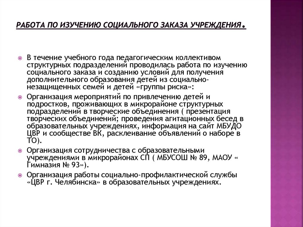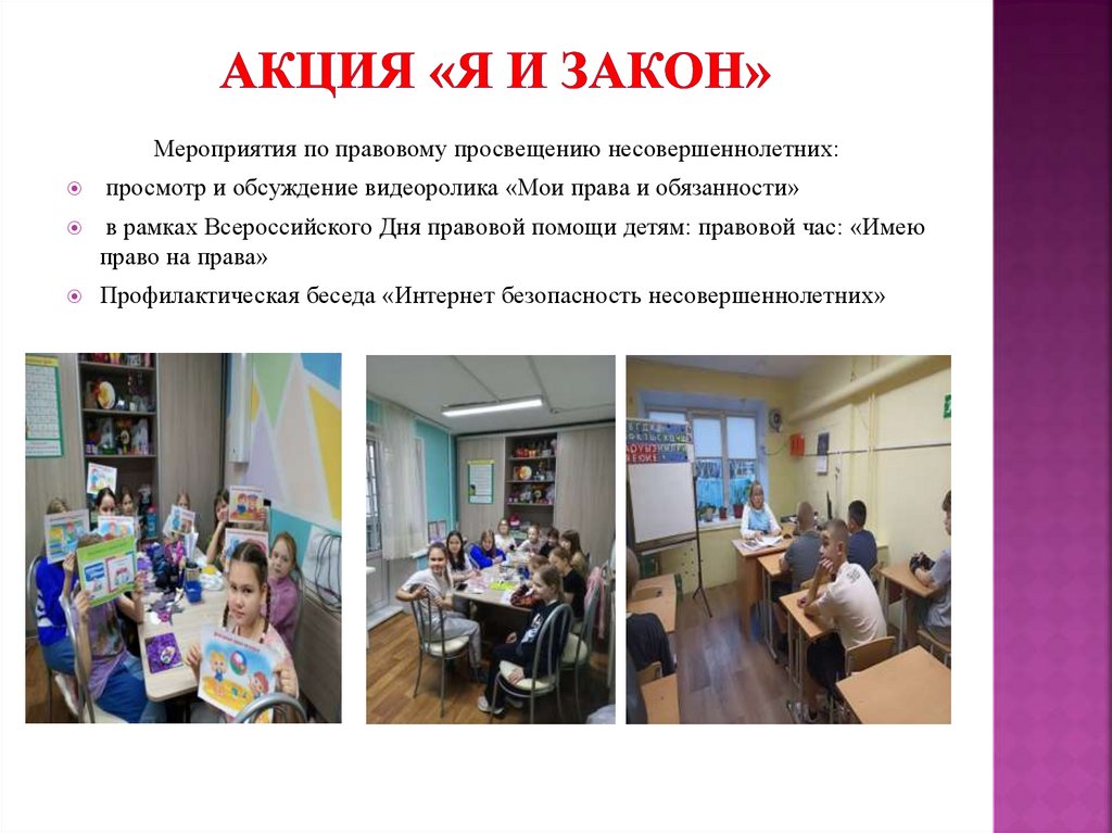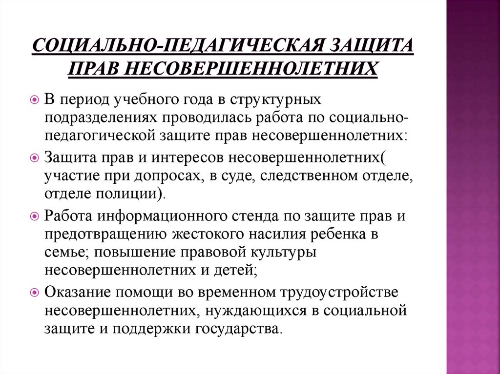 В период учебного года в структурныхподразделениях проводилась работа по социальнопедагогической защите прав несовершеннолетних: