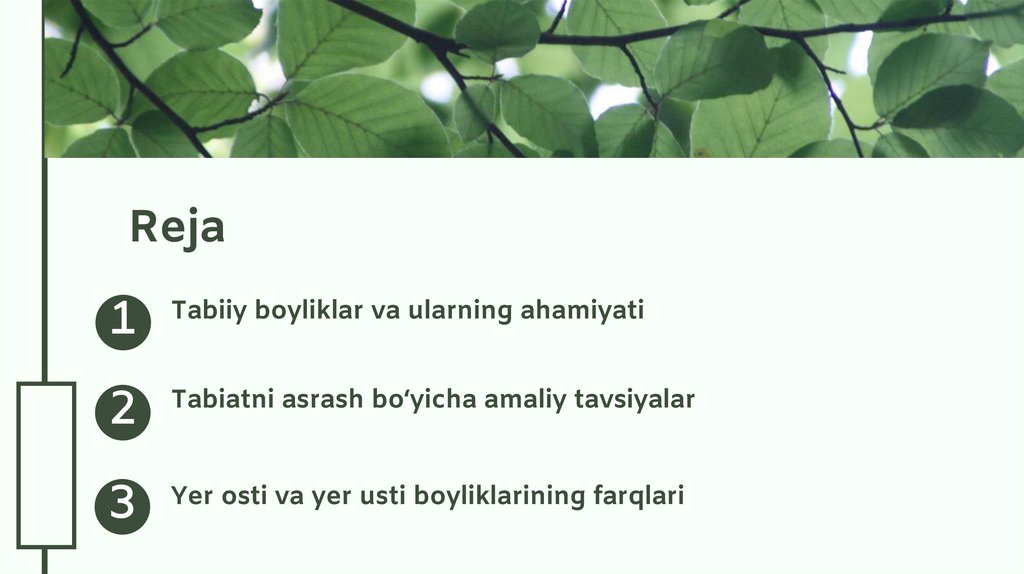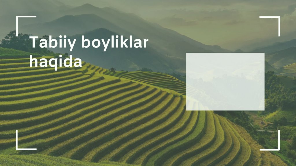Tabiiy boyliklar hayotimizning ajralmas qismi bo'lib, ularga