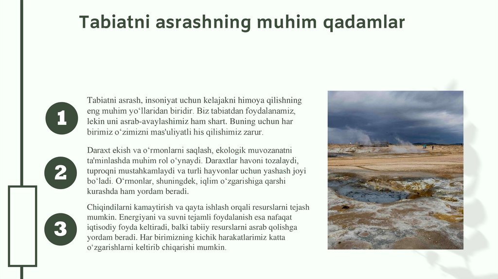 Tabiatni asrash bo‘yicha amaliy tavsiyalar