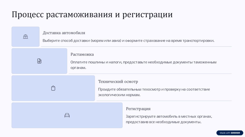 Процесс растаможивания и регистрацииДоставка автомобиля