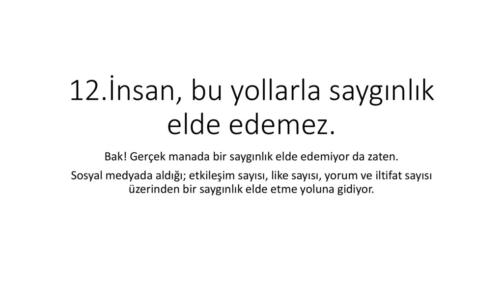 12. 12.İnsan, bu yollarla saygınlık elde edemez.