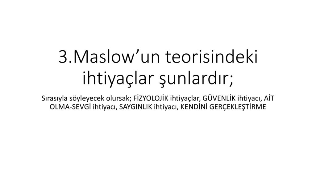 3. 3.Maslow’un teorisindeki ihtiyaçlar şunlardır;