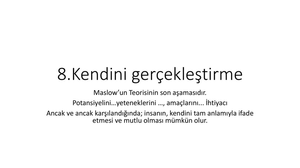 Maslow’un Teorisinin son aşamasıdır.Potansiyelini…yeteneklerini …, amaçlarını... İhtiyacı