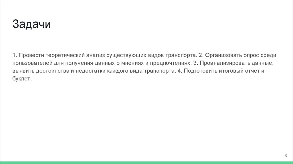 Задачи1. Провести теоретический анализ существующих видов транспорта. 2. Организовать опрос среди