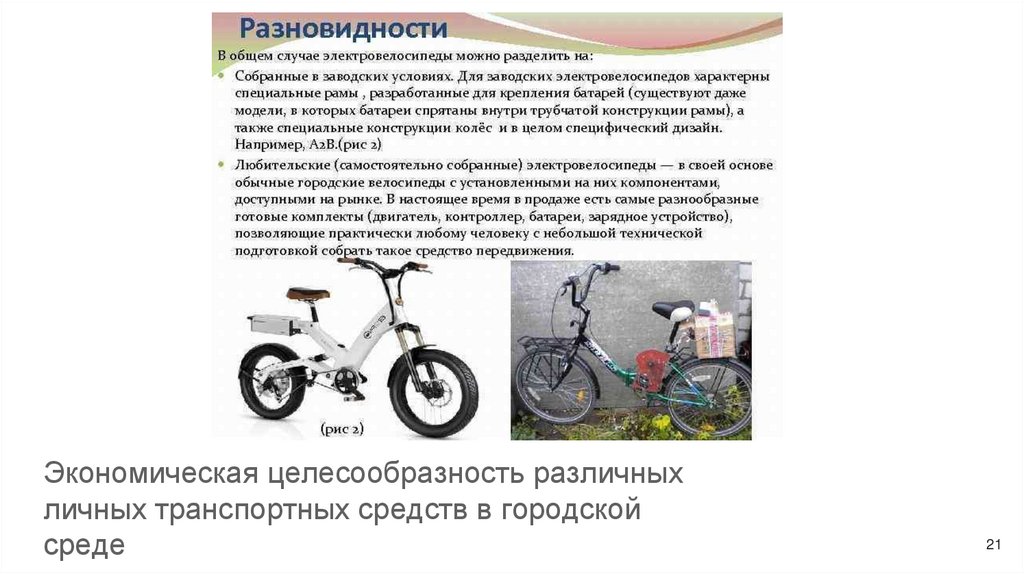 Экономическая целесообразность различныхличных транспортных средств в городской
