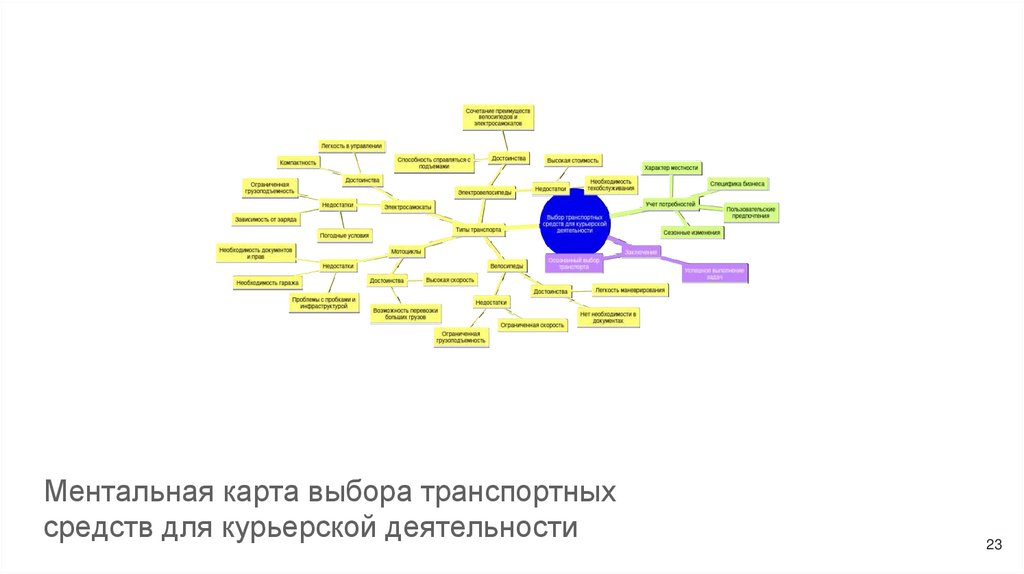 Ментальная карта выбора транспортныхсредств для курьерской деятельности