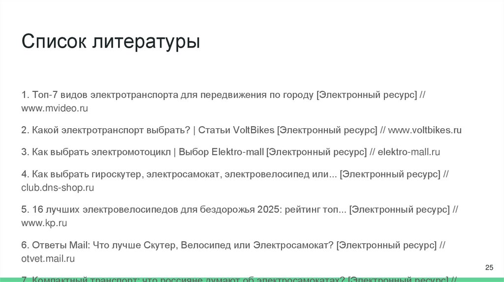 Список литературы1. Топ-7 видов электротранспорта для передвижения по городу [Электронный ресурс] //