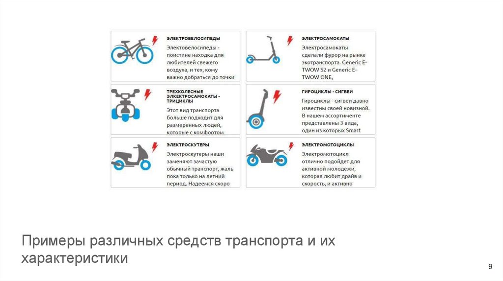 альтернативные виды транспорта: велосипеды, электросамокаты и мотоциклы. Данная работа