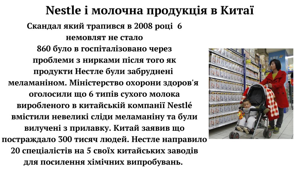 Nestle і молочна продукція в КитаїСкандал який трапився в 2008 році 6