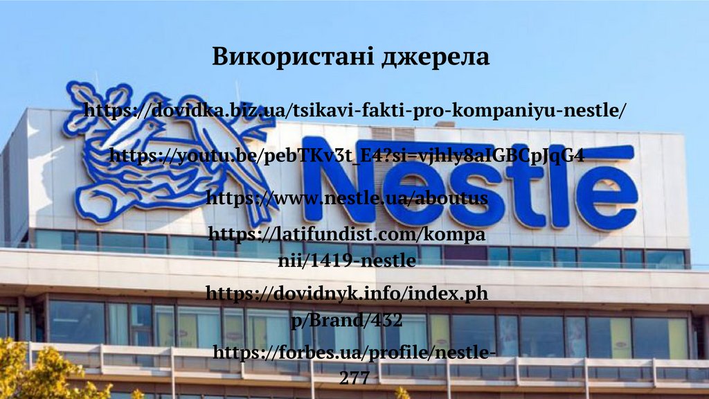 Використані джерелаhttps://dovidka.biz.ua/tsikavi-fakti-pro-kompaniyu-nestle/