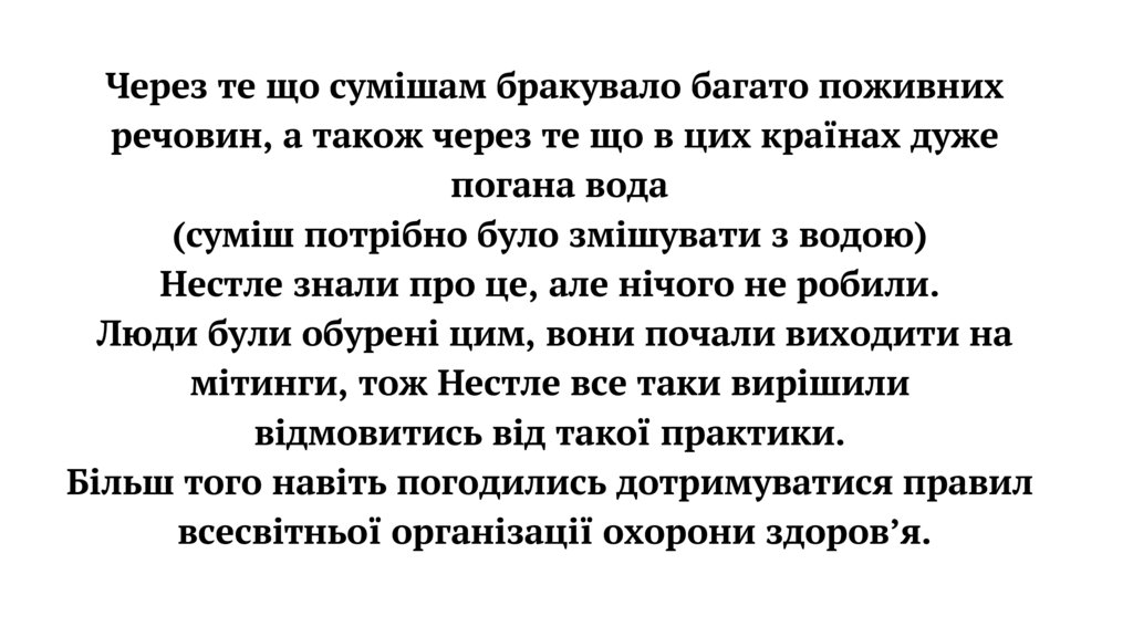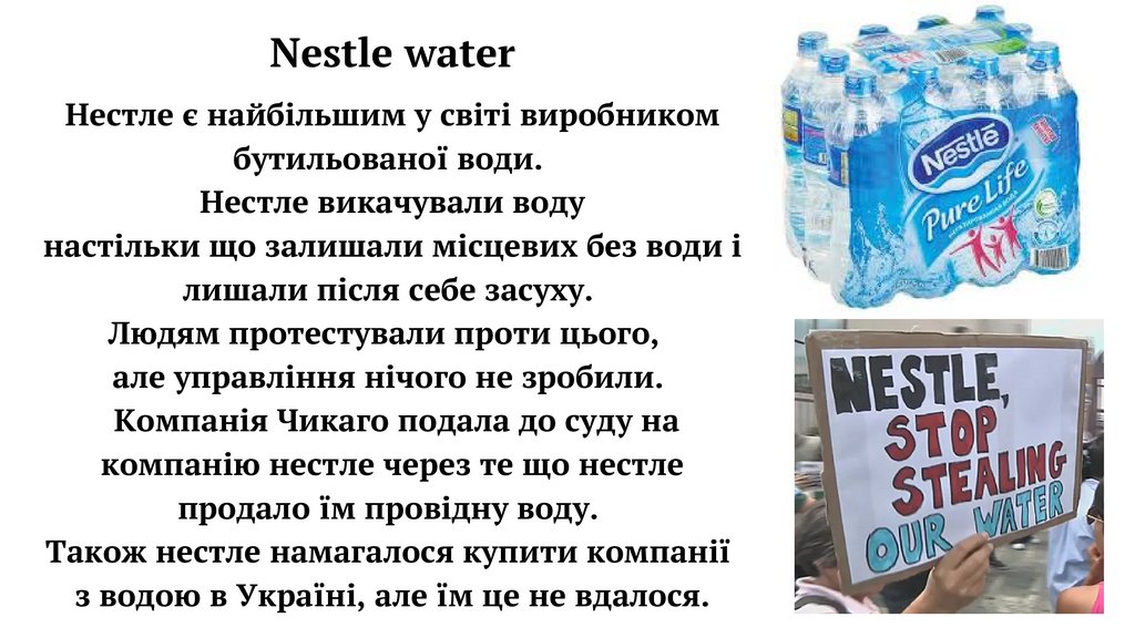 відмовилася допомагати. Нестле є глобальною компанією тому міжнародне