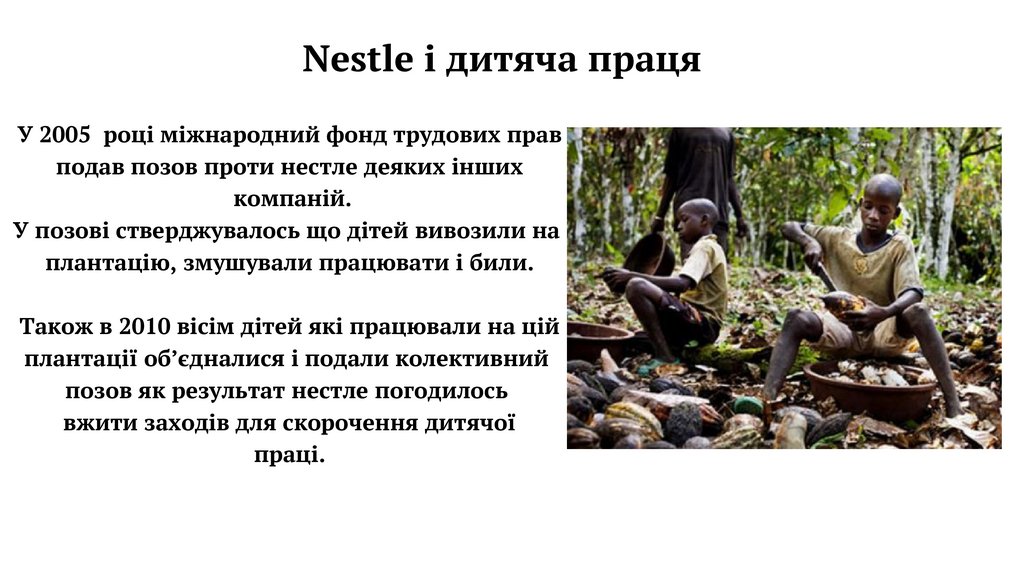 Nestle і дитяча працяУ 2005 році міжнародний фонд трудових прав