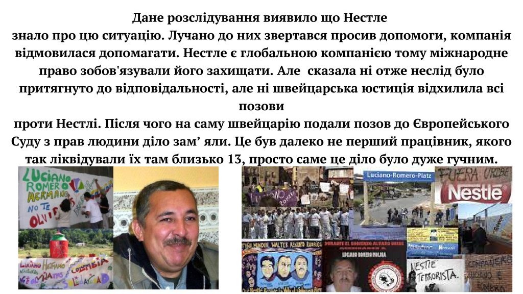 Дане розслідування виявило що Нестлезнало про цю ситуацію. Лучано до них звертався просив допомоги, компанія