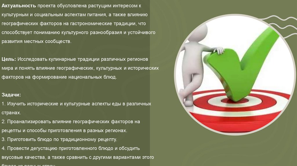 Актуальность проекта обусловлена растущим интересом ккультурным и социальным аспектам питания, а также влиянию