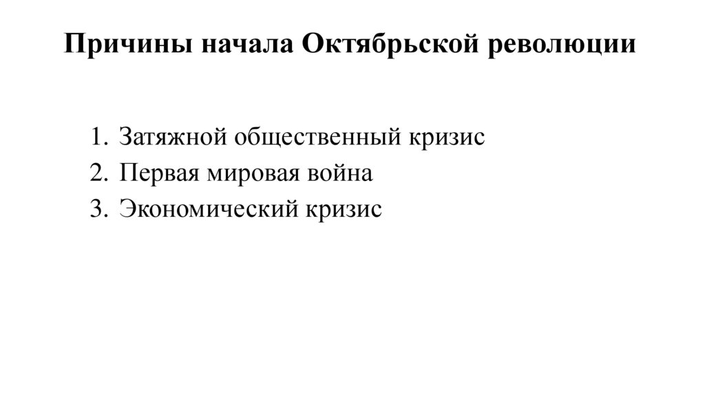 Причины начала Октябрьской революции1. Затяжной общественный кризис