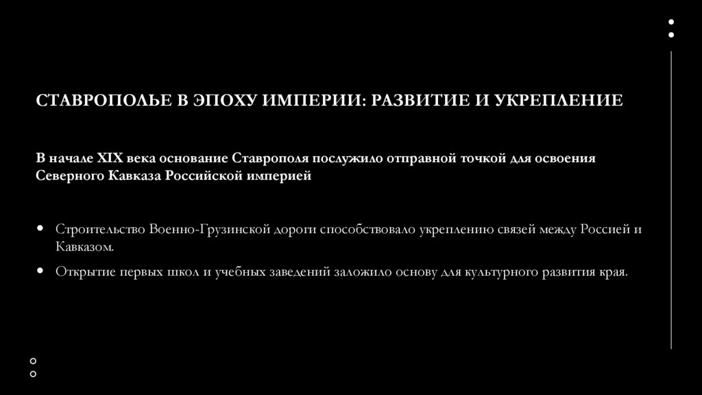 СТАВРОПОЛЬЕ В ЭПОХУ ИМПЕРИИ: РАЗВИТИЕ И УКРЕПЛЕНИЕВ начале XIX века основание Ставрополя послужило отправной точкой для освоения