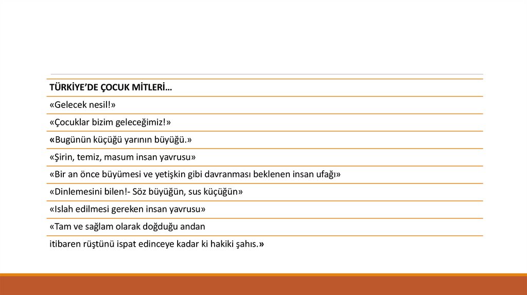 TÜRKİYE’DE ÇOCUK MİTLERİ…«Gelecek nesil!»