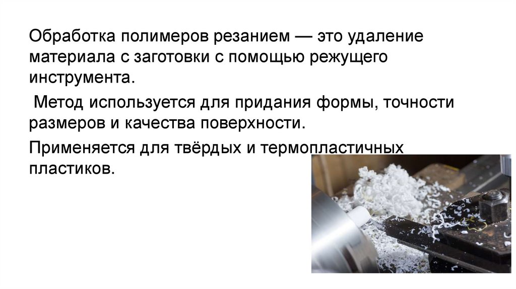 Обработка полимеров резанием — это удалениематериала с заготовки с помощью режущего