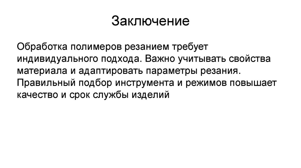 ЗаключениеОбработка полимеров резанием требует