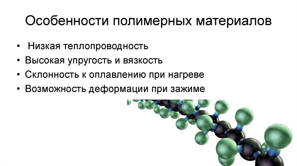 Особенности полимерных материалов• Низкая теплопроводность