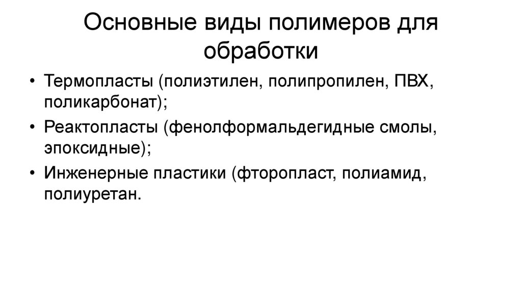 Основные виды полимеров дляобработки