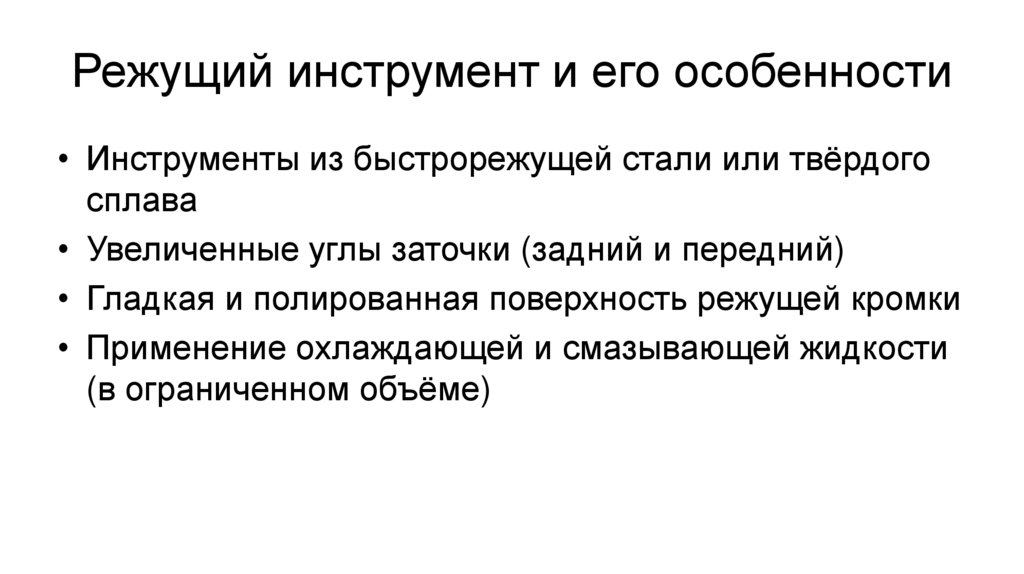 Режущий инструмент и его особенности• Инструменты из быстрорежущей стали или твёрдого