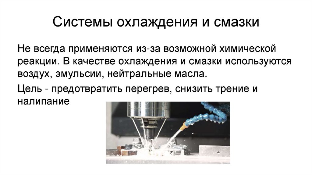 Системы охлаждения и смазкиНе всегда применяются из-за возможной химической