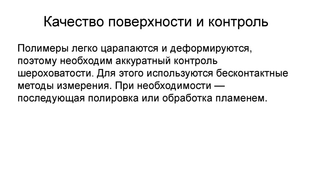 Качество поверхности и контрольПолимеры легко царапаются и деформируются,