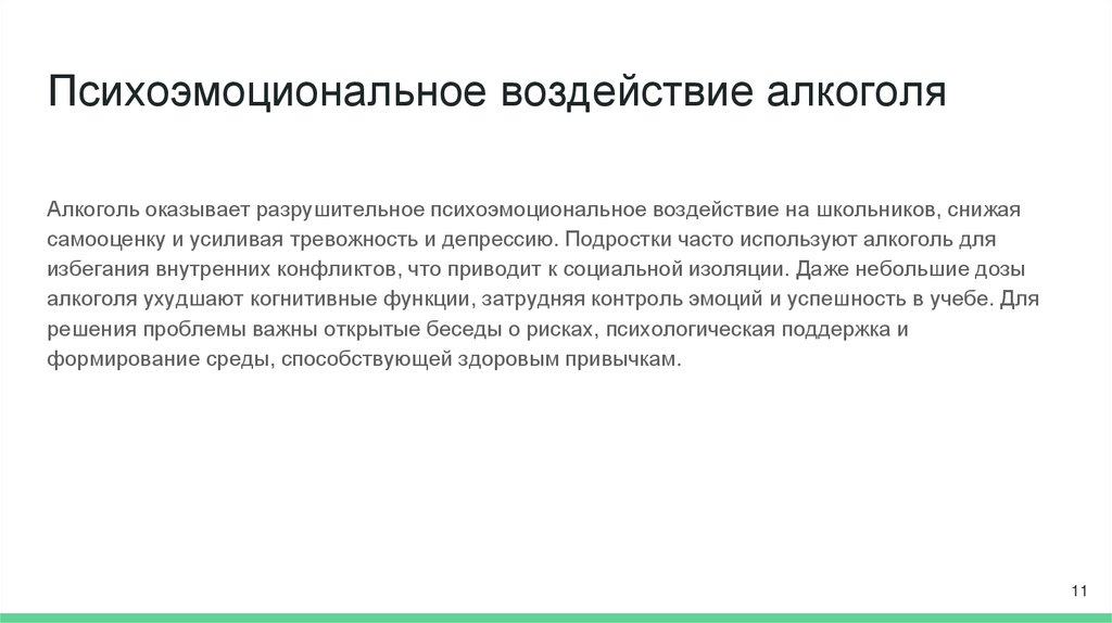 алкоголя ухудшают когнитивные функции, затрудняя контроль эмоций и успешность в учебе. Для