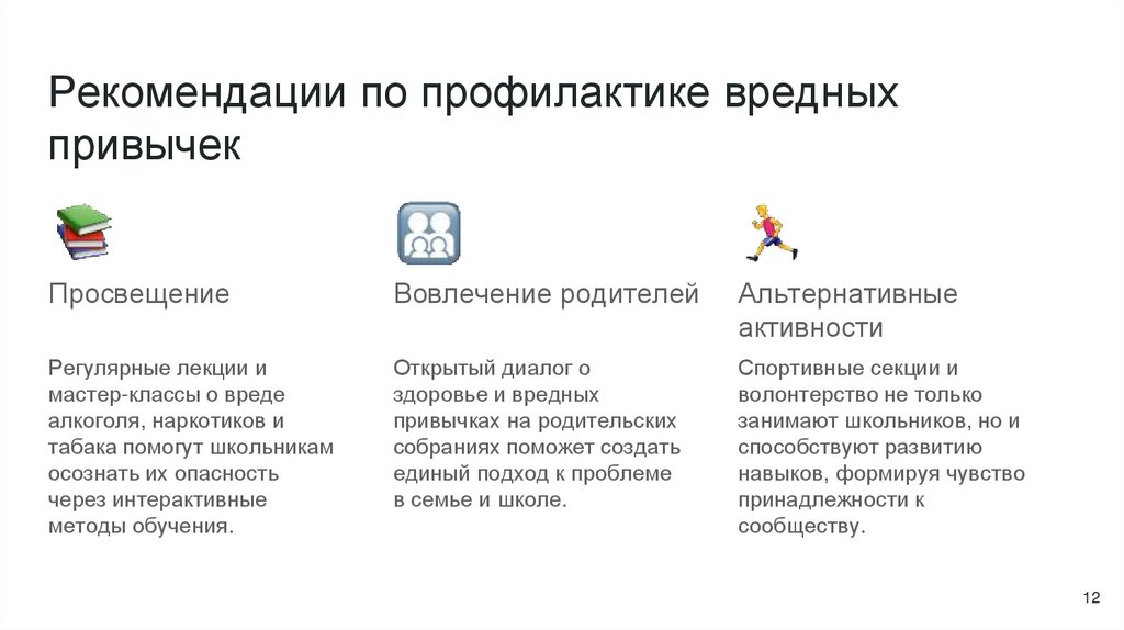 рекомендации по профилактике вредных привычек.