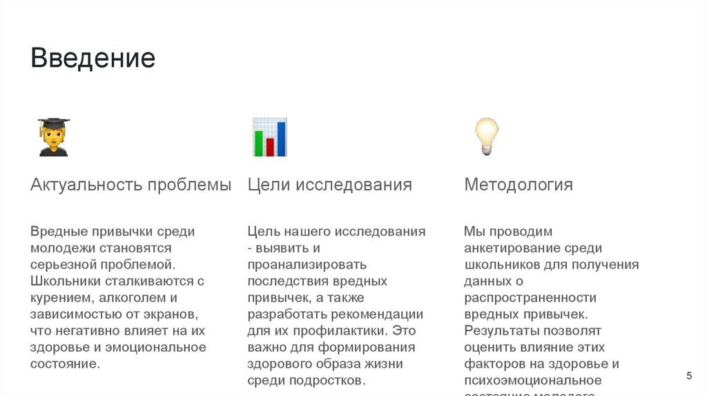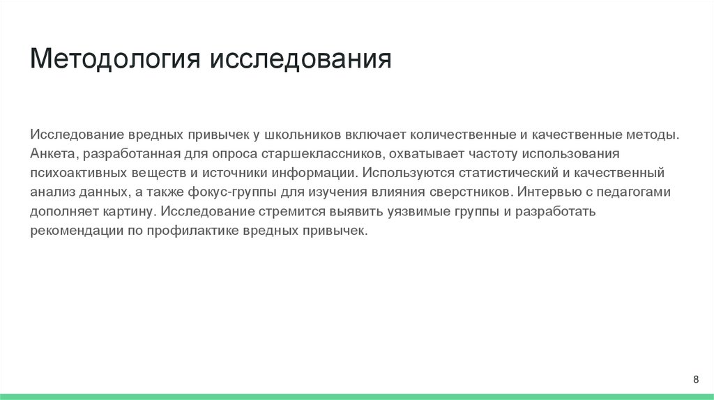 Методология исследованияИсследование вредных привычек у школьников включает количественные и качественные методы.