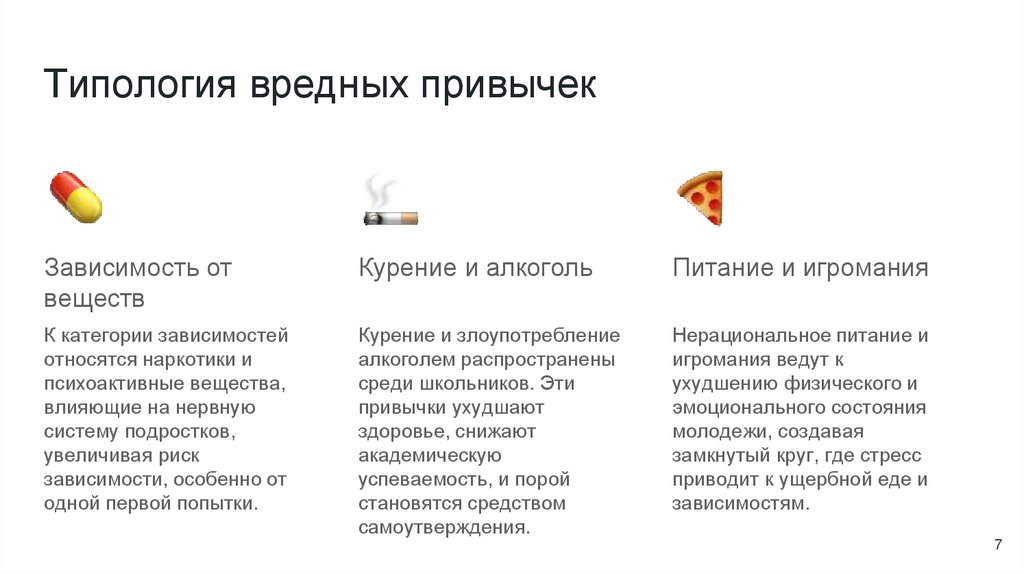 Типология вредных привычекЗависимость от