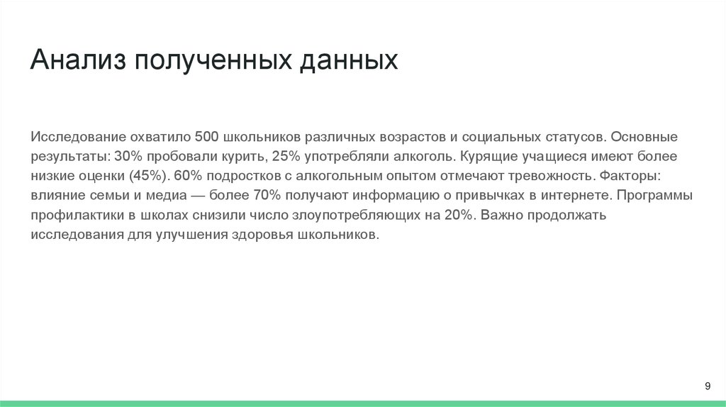Анализ полученных данныхИсследование охватило 500 школьников различных возрастов и социальных статусов. Основные