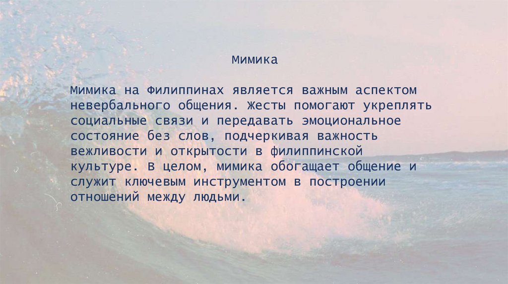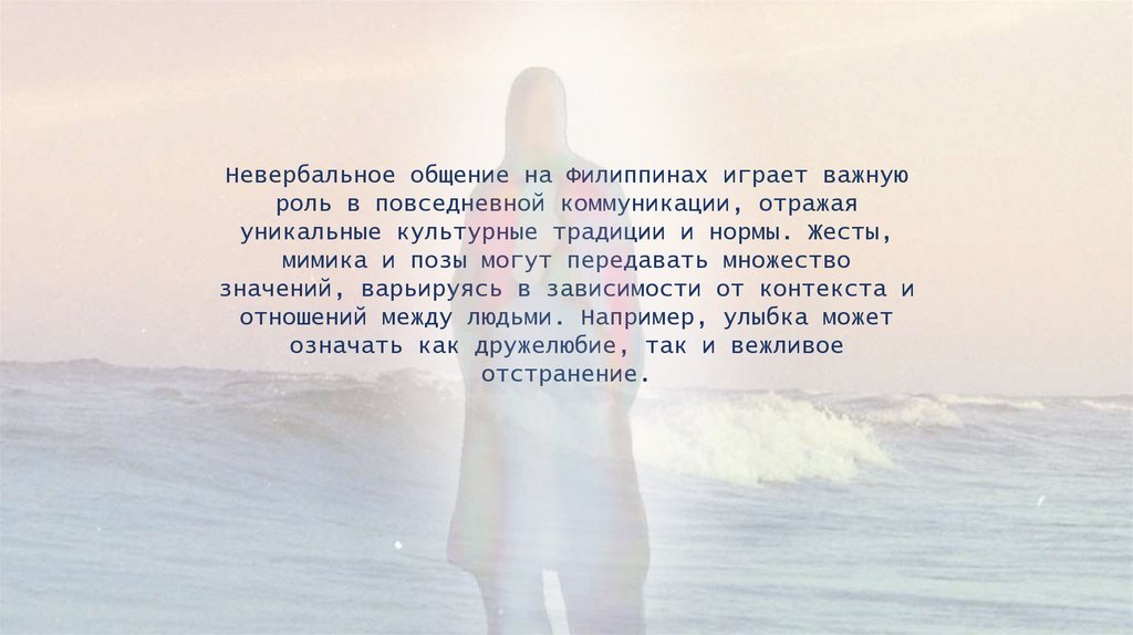 Невербальное общение на Филиппинах играет важнуюроль в повседневной коммуникации, отражая