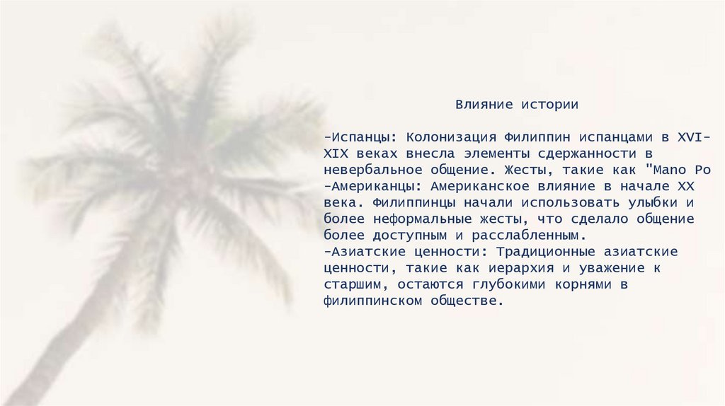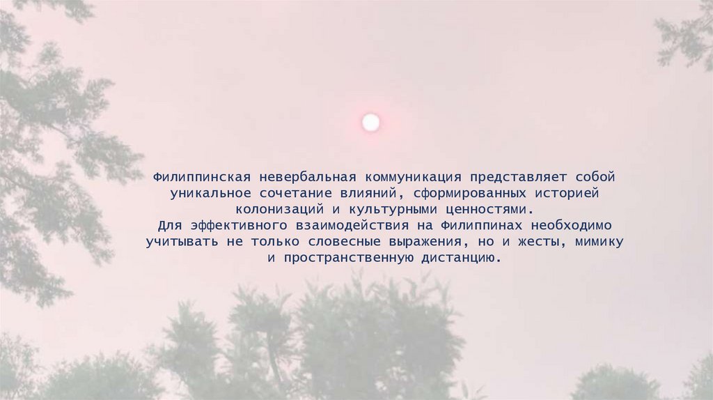 Филиппинская невербальная коммуникация представляет собойуникальное сочетание влияний, сформированных историей