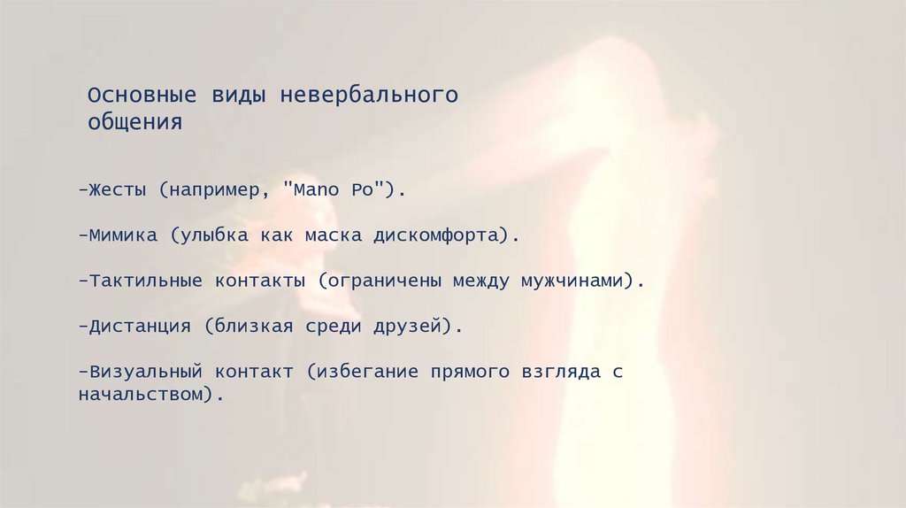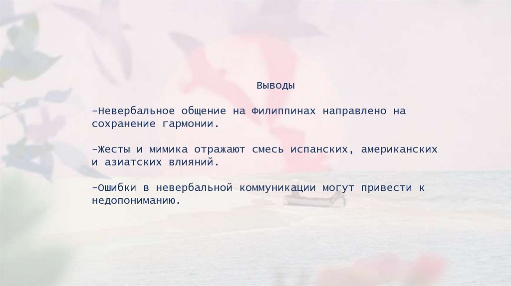 Выводы-Невербальное общение на Филиппинах направлено на