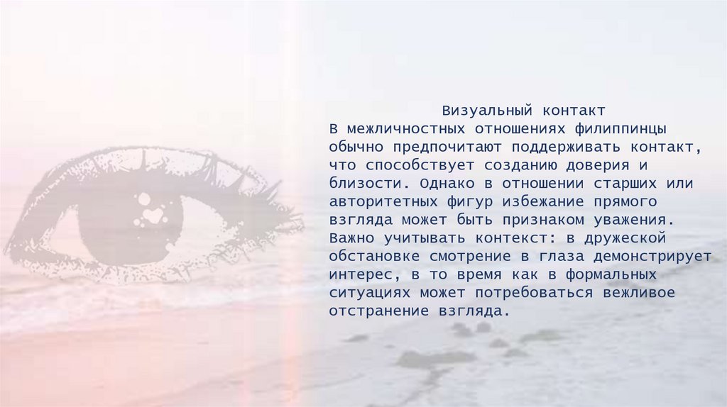 Визуальный контактВ межличностных отношениях филиппинцы