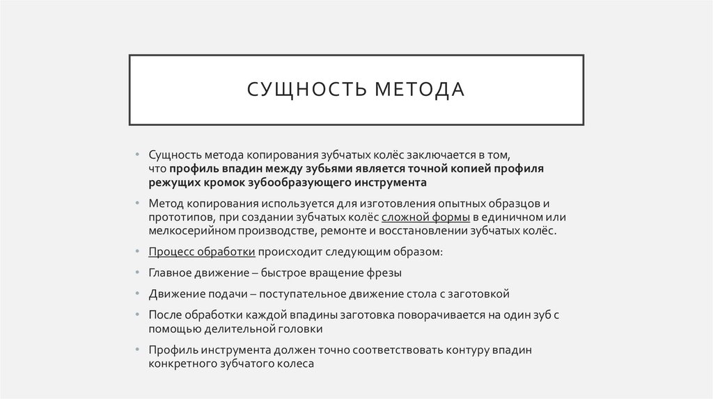 СУЩНОСТЬ МЕТОДА• Сущность метода копирования зубчатых колёс заключается в том,