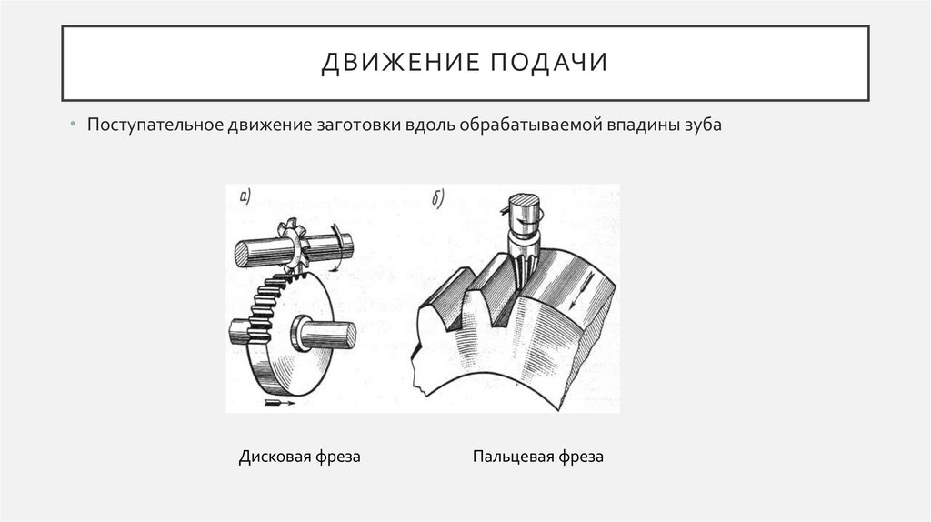 ДВИЖЕНИЕ ПОДАЧИ• Поступательное движение заготовки вдоль обрабатываемой впадины зуба